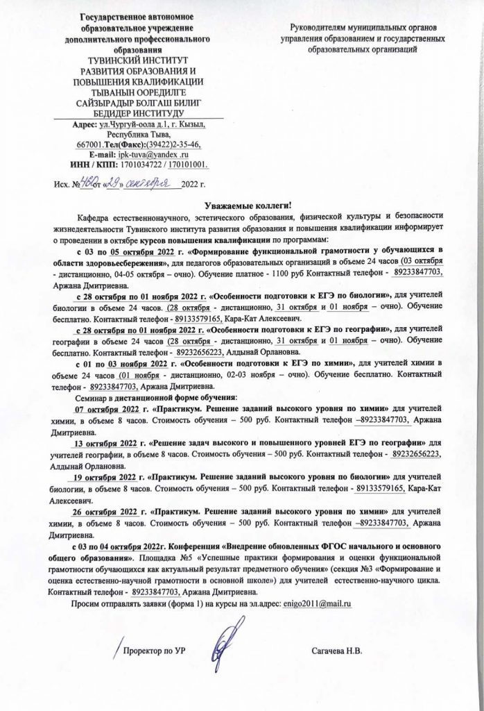 Письмо о курсах повышения квалификации